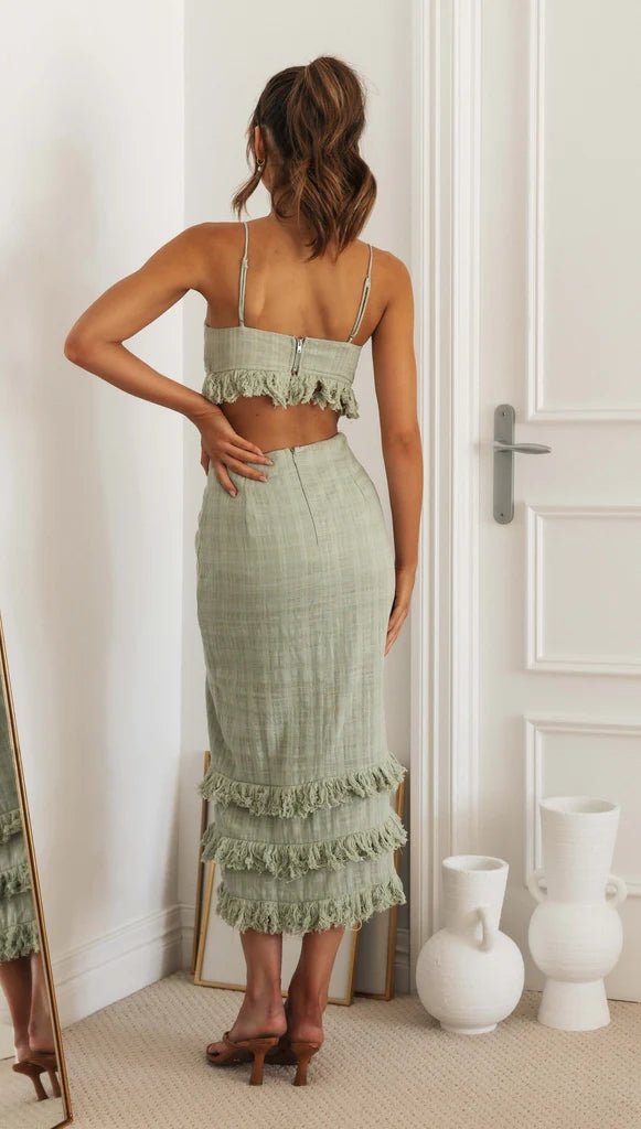 Harmony Split Midi Dress - Green & White