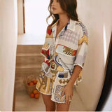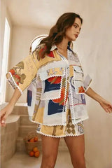 Meet your warm-weather essential, the Effortless Top and Shorts Set. This printed two piece set pairs a relaxed button-up shirt with belted high-waisted shorts for breathable, all-day ease.