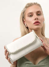 Home / Products / Yvette Pearl Trim Clutch Bag - White